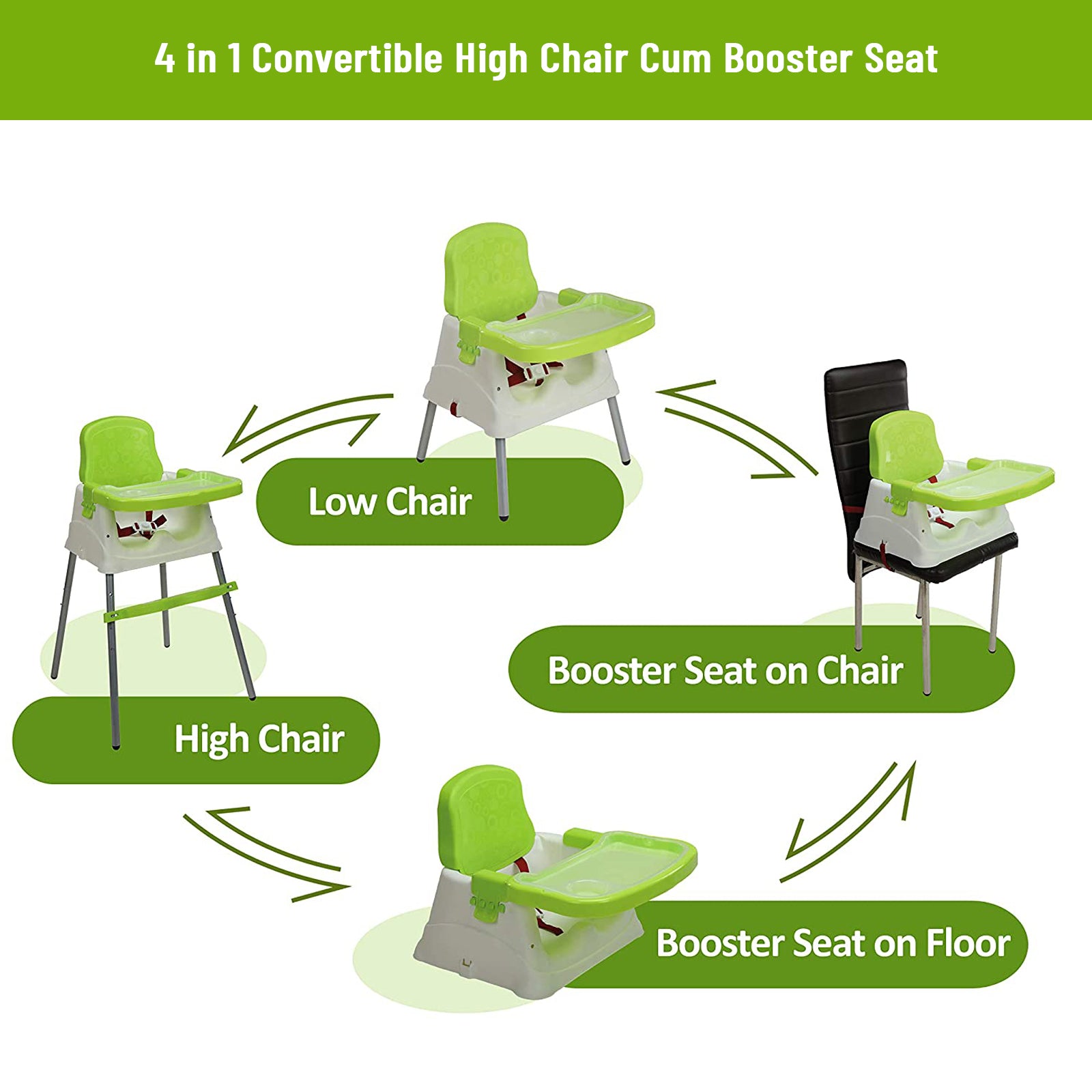 - 4IN1 HIGH CHAIR: This high chair converts into a booster chair and a low chair with tray.